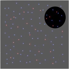 This is just a simple pic I made of blue and red dots. I didn’t count how many of either, but it doesn’t matter. Now; look at this pic: