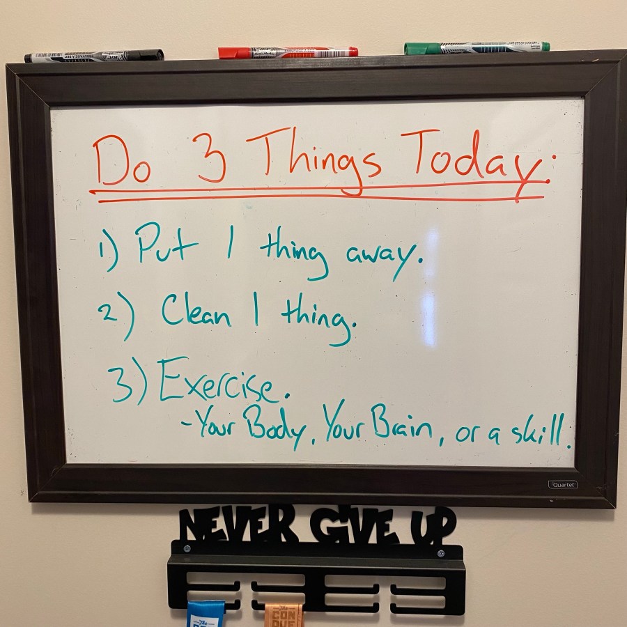 Few people want to clean, but 10 seconds of cleaning is easy. I can do that while the next episode of “The Witcher” loads! If I can muster the discipline to clean for 10 seconds, eventually that will turn into 20 seconds, then 20 minutes, and eventually I’ll work up the motivation and discipline I need to do the things I have been ignoring, and get on to the things I do wanna do, without the weight of all those undone things pressing on me.